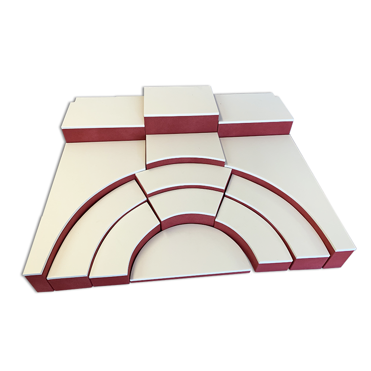 Δημιουργία επιπέδων βιτρίνας σε χρώμα κόκκινο σουέτ και λευκή δερματίνη.